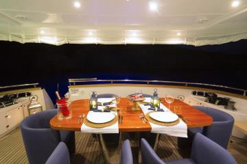 Motor yacht Caelum is registered at the Bodrum port and provides boat rental opportunities to our guests in the bays in Turkey region. Caelum yacht has 2x1500 Hp Mtu power main engine. The air contiditon is Available on the boat. Daily charter prices for motor yacht for rent Caelum vary between 2800 Euro in low season and 3500 Euro in high season.