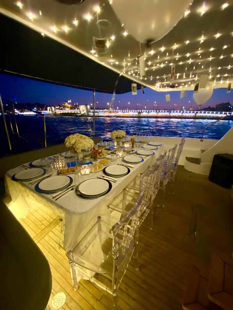 The Luxury 1 yacht, with 2 cabins in total, offers yacht charter services in the Bosphorus daily or hourly for a maximum of 12 people. These include hourly rentals such as weddings on the boat, birthday celebrations, marriage proposals, engagement on the yacht, iftar on the boat, breakfast, business meetings and graduation celebrations on the yacht.