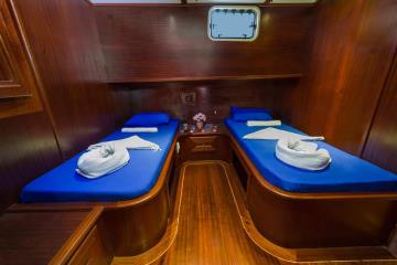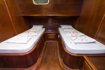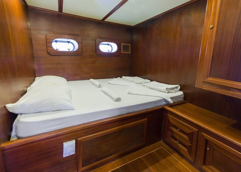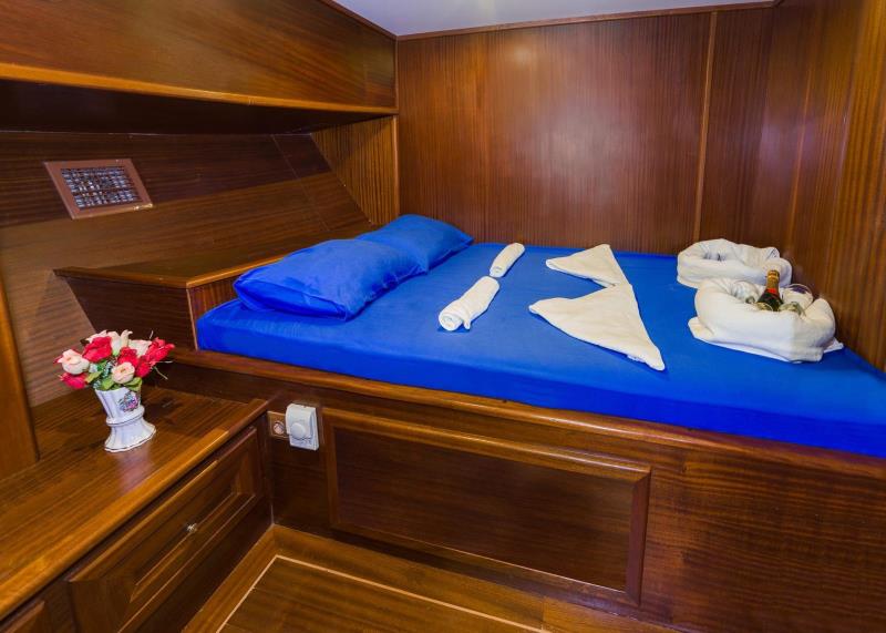 Oğuz 5 boat has 5 Double, 2 Twin cabins layout. The Oğuz 5 gulet, which has 7 cabins in total, offers blue cruise and yacht charter services up to maximum 16 people.