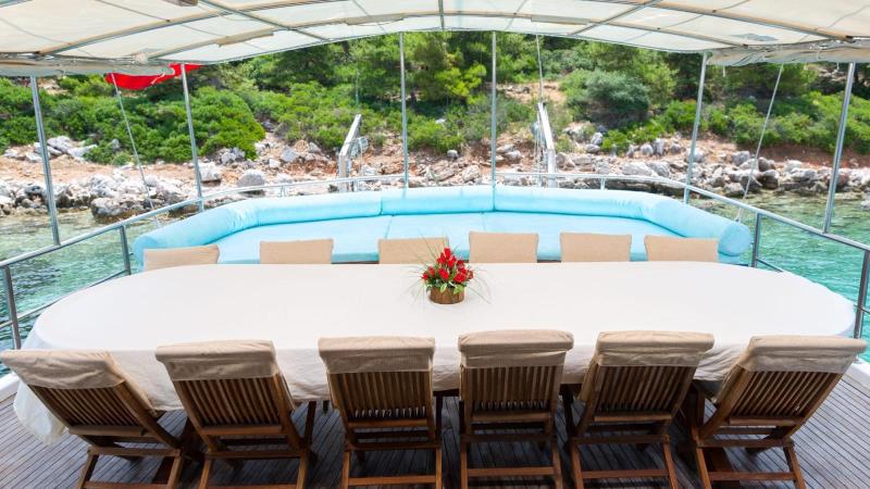 The Oğuz 5 boat, listed in the Gulet rental category, is 26 meters long. Oğuz 5 yacht was launched in 1999 and was renewed in 2013.
