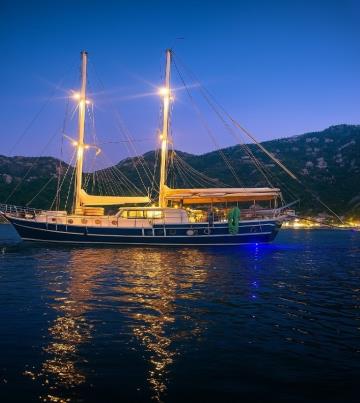 The boat Yorgun 1 is registered at the Bozburun port and provides blue cruise and boat rental opportunities to our guests in the bays in Turkey region. Yorgun 1 gulet has 500 Hp MAN power main engine. The air contiditon is Available on the boat. Daily charter prices for yacht Yorgun 1 vary between 1100 Euro in low season and 1500 Euro in high season.