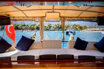 The boat Beyzade is registered at the Fethiye port and provides blue cruise and boat rental opportunities to our guests in the bays in Turkey region. Beyzade gulet has 422 Hp Man power main engine. The air contiditon is Available on the boat. Daily charter prices for yacht Beyzade vary between 1285 Euro in low season and 1800 Euro in high season.