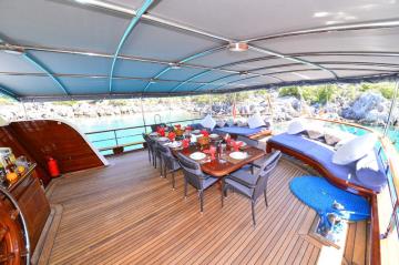 Mehmet Ayaz boat has 2 Master, 3 Double cabins layout. The Mehmet Ayaz gulet, which has 5 cabins in total, offers blue cruise and yacht charter services up to maximum 10 people.