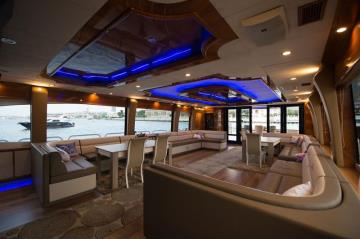 The ADA50004 yacht, with 3 cabins in total, offers yacht charter services in the Bosphorus daily or hourly for a maximum of 55 people. These include hourly rentals such as weddings on the boat, birthday celebrations, marriage proposals, engagement on the yacht, iftar on the boat, breakfast, business meetings and graduation celebrations on the yacht.