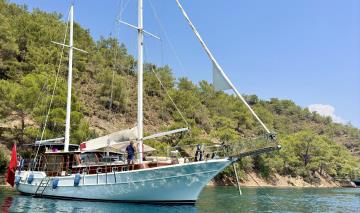 23 metrelik lüks teknemiz, 2 master kabin ve 2 double kabiniyle 8 kişiye kadar olan gruplarınıza mavi yolculuk imkanı sunuyor. Deneyimli ve güler yüzlü 3 kişilik mürettebatın görev yaptığı teknemiz, 2023 yılında baştan aşağı yenilenmiş olup, her şey siz değerli misafirlerimizin konforu düşünülerek tasarlanmıştır.